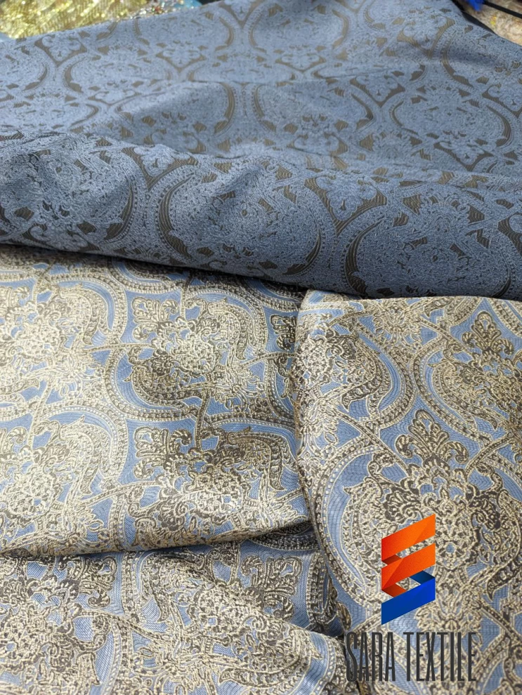Jacquard fabric is defined as an elegant textile with detailed patterns woven into the fabric itself. Made in any style like damask, brocade, or velvet, jacquard fabric is manufactured using a jacquard loom and can be made from any fiber such as silk, cotton, or metallic yarns.